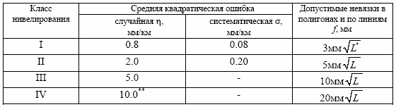 По точности выполнения нивелирование делят на I, II, III, IV классы точности. I и II классы относят к высокоточному нивелированию, III и IV классы — к точному. Также в строительных работах применют менее точное — техническое нивелирование, которые ниже точности IV класса. Для каждого класса точности существует определенная методика выполнения работ.
